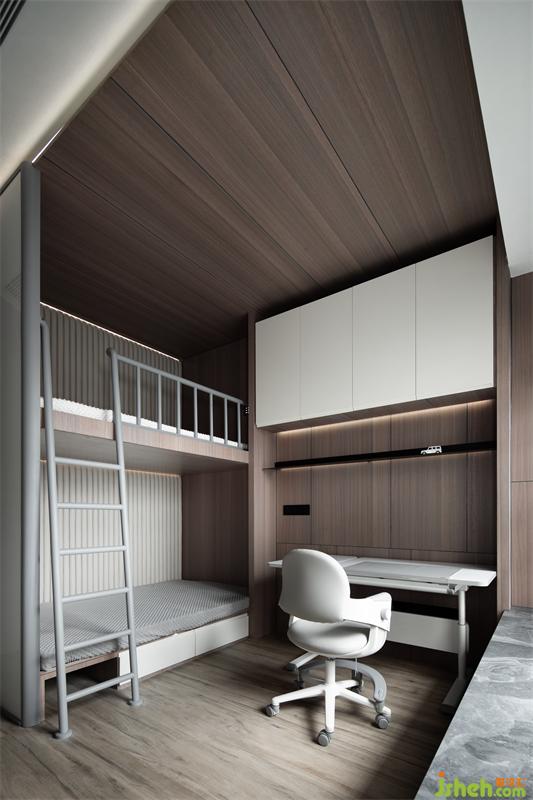 儿童房,床边圆角造型保护儿童设计,营造具有记忆力的空间氛围。生活简单轻松有趣,大大的写字台,适应不同阶段孩子需求。