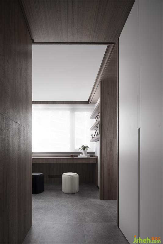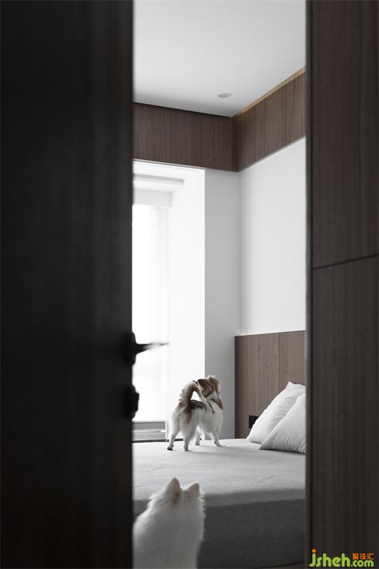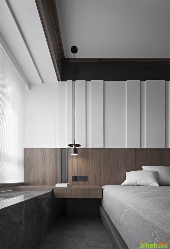 床头木饰面墙裙拒绝掉多余的床头或者软包的繁琐,更加简单并且让空间更加开阔,减少卫生死角,简约的空间展示着肌理、气质、线条的平衡美。
