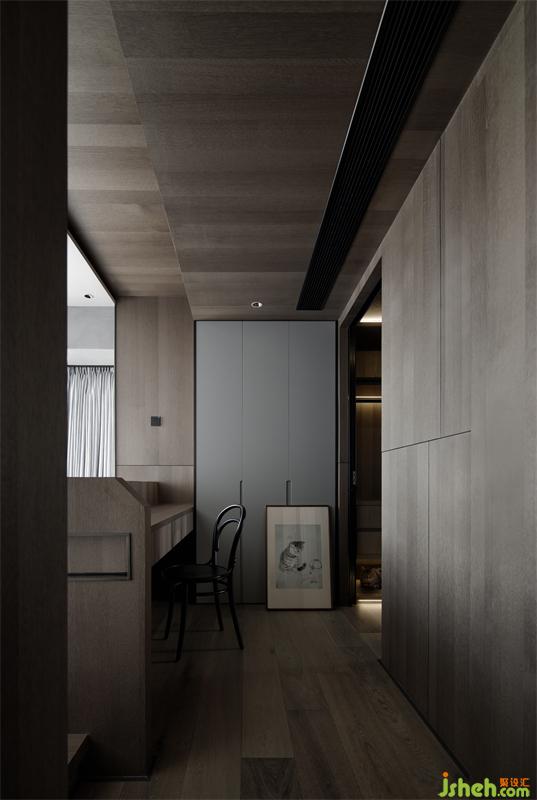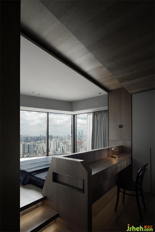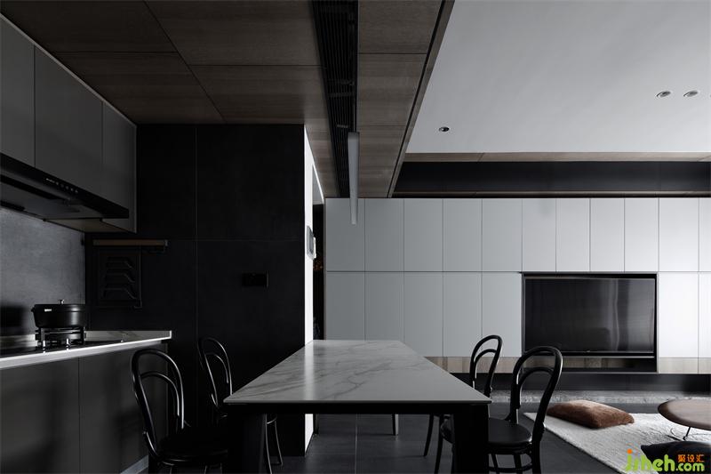 餐饮区以基于白灰主调,深棕体块穿插黑色线条,点到为止的深浅对比,轮廓勾勒的简洁明快,彼此之间的互通有无,金属元素的植入和灯光表现使整体空间摒弃一切严肃,细节处从灰到橙,由静至动,起伏转化层次……家居设计而对生活在深圳都市的作者,外在环境和内部表现的分离,进展极致的思考方式与库哈斯的“拥挤文化”和“密度狂欢”对比鲜明。