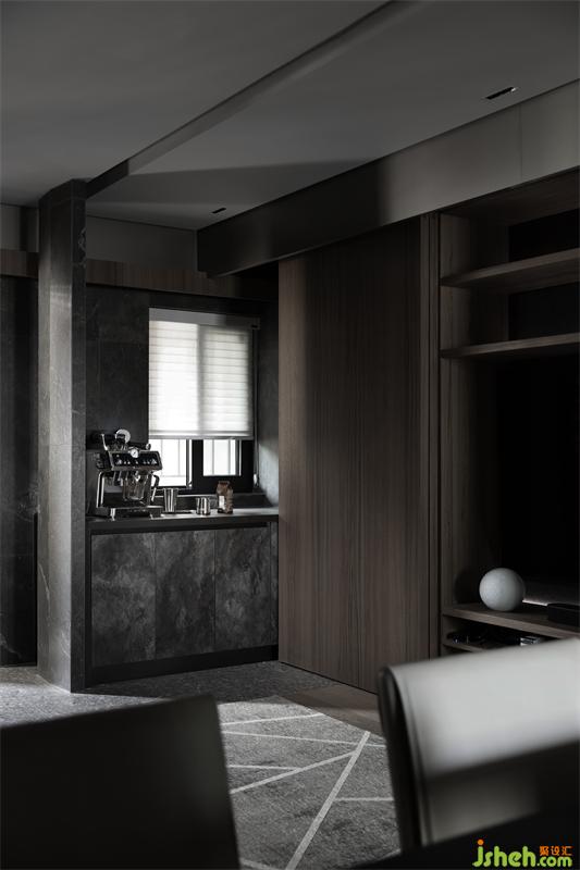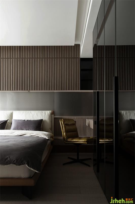 家居设计,是一种生活的痕迹。将地台的小部分面积“让”予沙发,扩大了沙发的实用面积,同时在视觉效果上显得客厅更宽敞明亮。木子仁设计采用巴士门工艺,让沙发背景墙上木饰面与沙发完美融合,诠释了居住者对“美”的多面认知。旁边的移门丝毫不占用空间,关上移门,即满足了私密性,打开移门,就呈现出通透性。