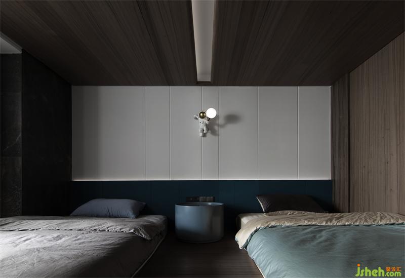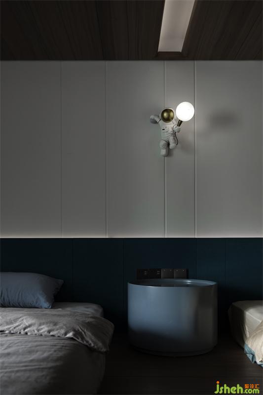 色系统一赋予卧室这个休憩空间更多的温润和舒适感,一盏极赋设计感的壁灯,柔和的灯光也打破整个空间的沉静。次卧的设计以简约为主,背景墙也是采用灰色艺术漆,刷半墙的设计丰富了空间线条,背景墙一盏木质的壁灯,充分贴合睡眠环境。