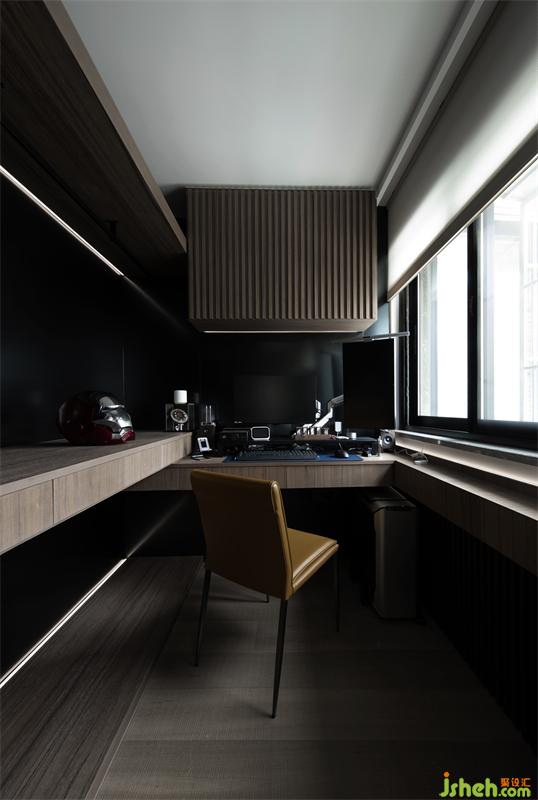 多功能房是居所中很重要的一处区域,用黑钢统一与公共空间的色调。木子仁设计推拉式移门可让书房同时拥有私密与开放两种功能。内部定制挂墙展示架以及储藏手办玻璃柜,让屋主在工作以及制作手办时,能够有很好的沉浸式体验。