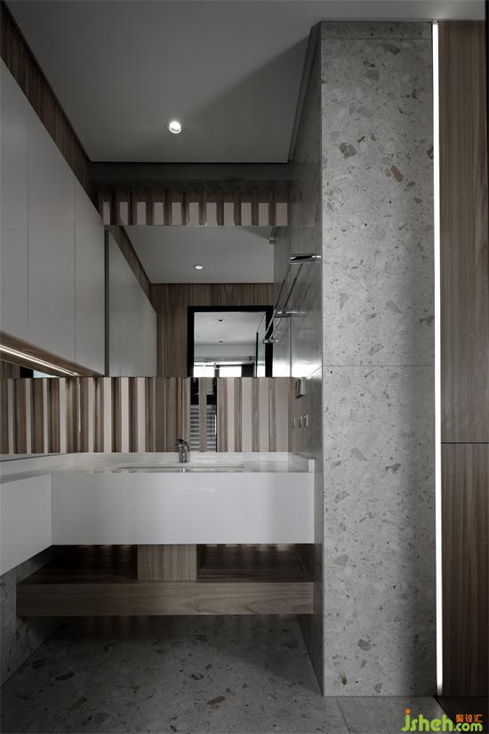 卫生间沿用公共空间色系,重新设计,增加储物空间的同时提高空间利用率。家装设计悬空的柜体让空间更加通透,也便于打扫。