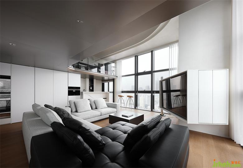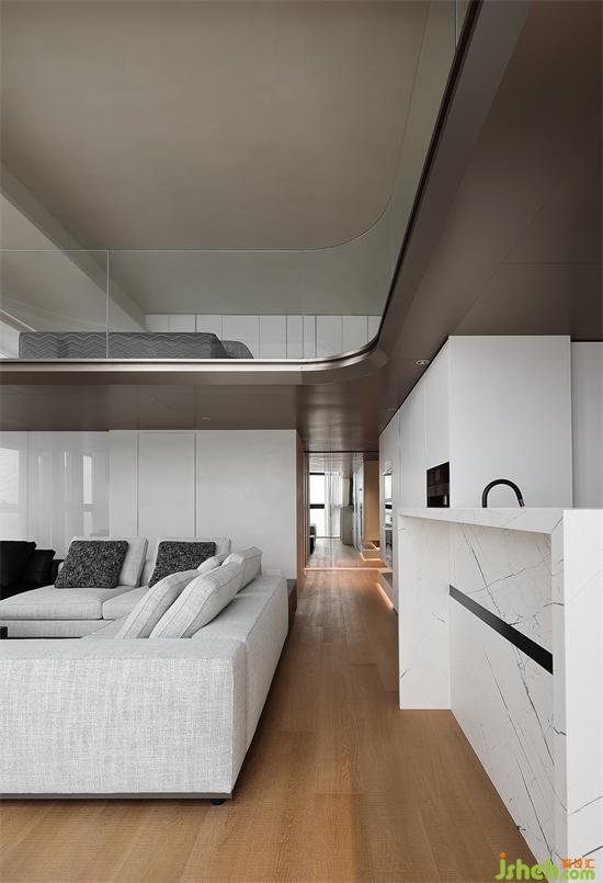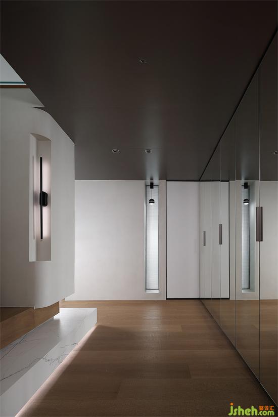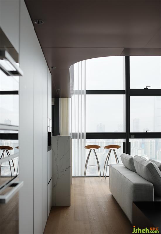 房子位于深圳中心地段,天气晴朗时可以俯瞰大海,远处眺望能看到地标式建筑,设计师运用干练的线条和纯粹的色系,创建一个宽敞、充满了气质的住宅。家装设计所见即所得,入户简约的白配上温柔的木地板结合天花硬朗的钢,形成一个现代独特风格的画面。