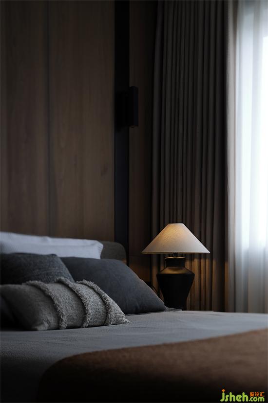 次卧延用了客餐厅的设计格调,增加了更多的木饰面带给居室更多的亲切感与温馨,生活之美更是内心沉淀的修养由内向外的气韵。