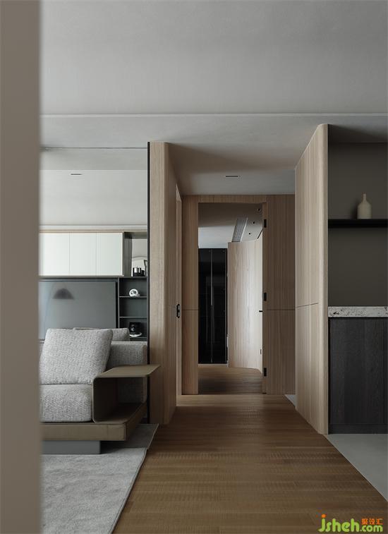 空间以木包裹,保留原始的材质,视线和光影穿越受到的阻力,增加了空间的流动性。