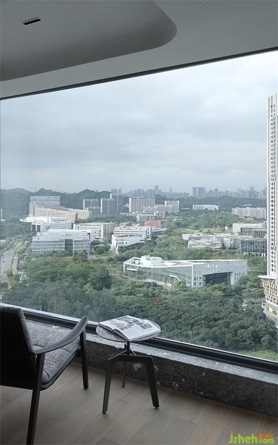 在时光的陪伴中,窗外的建筑、山峦、日出、日落都成为了空间的一部分,宝能城装修设计四季交替,窗外之景会变,屋内之景也跟着变换,空间内外就此合二为一。