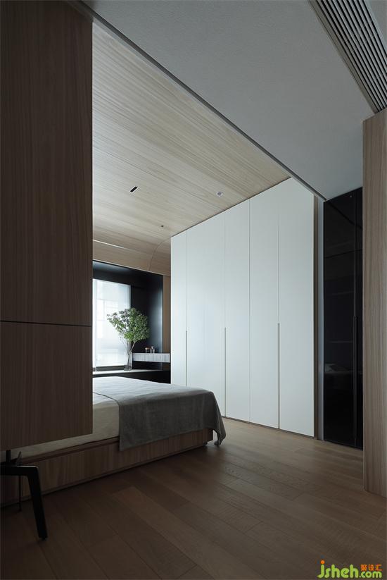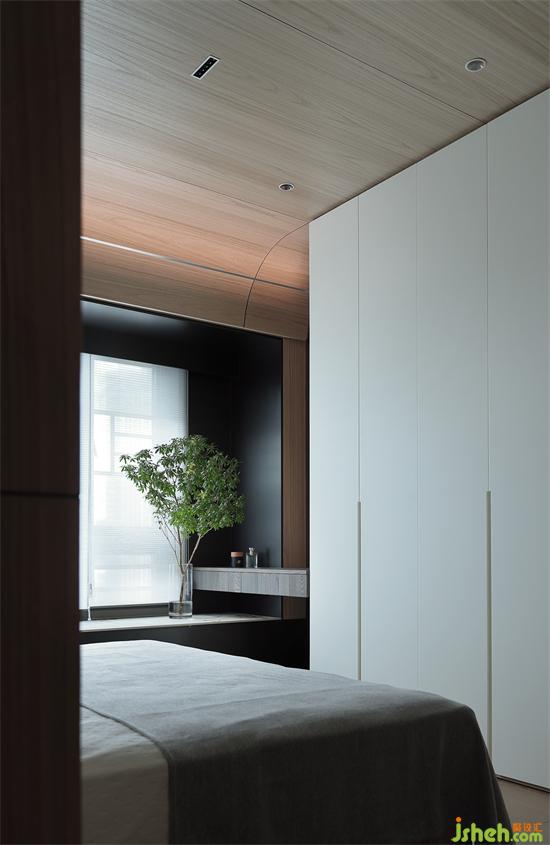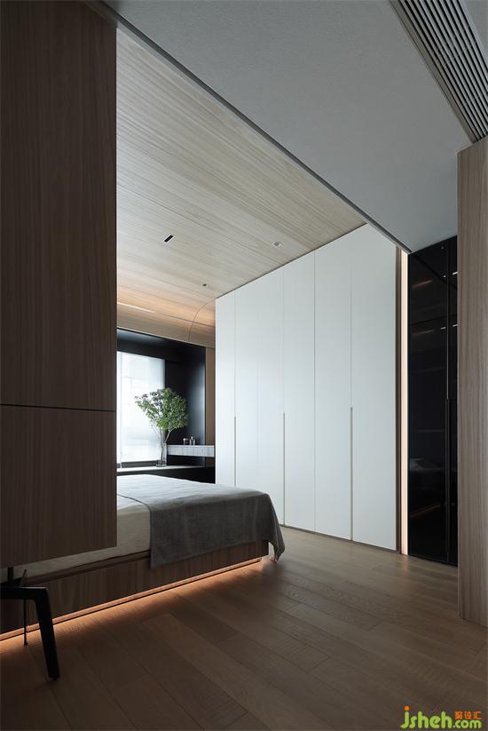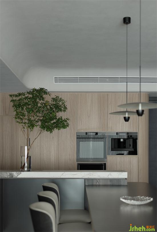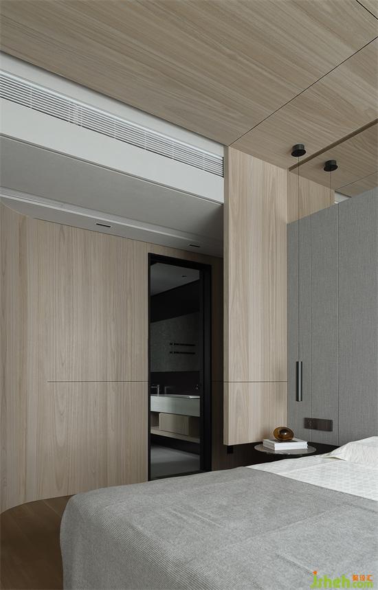 在原木有肌理的弧面天花增加了空间温柔的属性,光影与材质和谐协奏曲中,富有韵律感的几何形体,映照了人们对于美学思考中最本质的秩序需求,宝能城装修设计每一个醒来的清晨,一室盈盈间,生活的美好底色被唤醒。