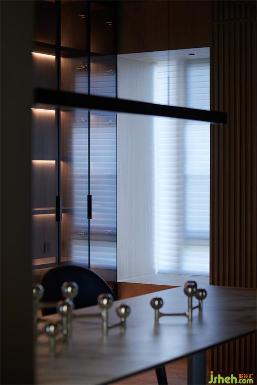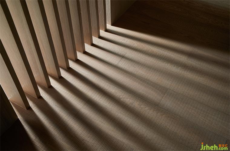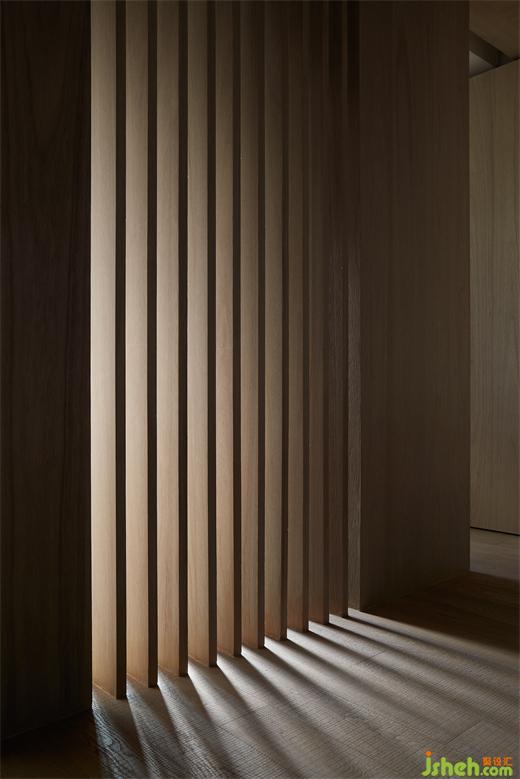 我们喜欢光,又喜欢静谧的氛围,屏风格栅区限定保护居住者隐私的同时,每条格栅迎着自然光,形成一种户外的自然光感,如自然光影绚丽的洒下。