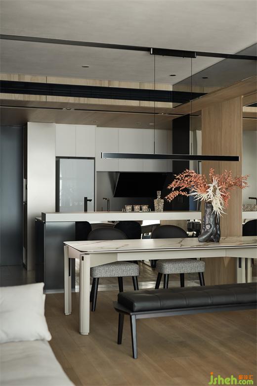 家居自由的放置在客厅里,岩石的原石色、枯叶的黄棕色、树皮的灰褐色、原木色……是自然最本真的颜色。浓郁的色彩作为点缀,深圳天鹅湖豪宅设计以留白中和,在光的勾勒下,色彩与空间晕染开,柔软的气质开始流转,包裹温暖。