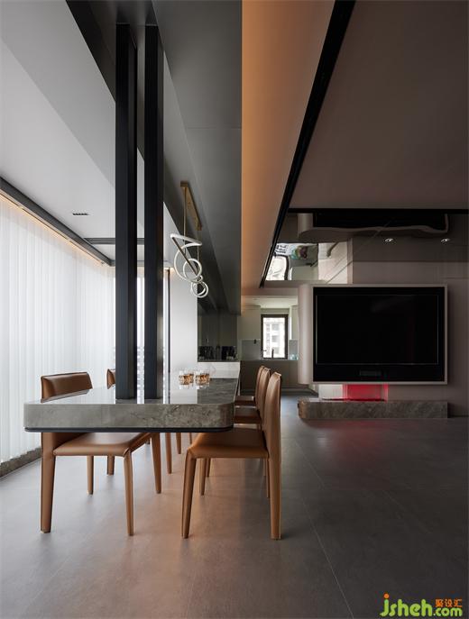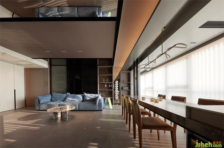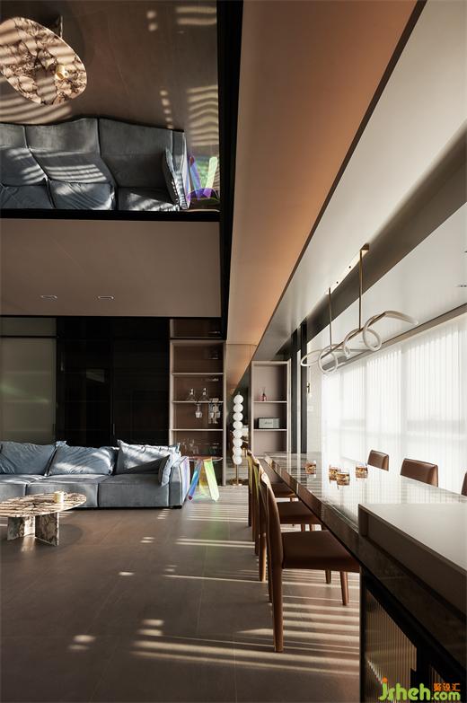家装设计为其提供了丰盈的容器通过下沉式的归家仪式心境有了转换的余地双层功能空间的分割设计,在居住与分享间找到了完美的衔接。客厅和餐厅保持独立的同时互相依存。
