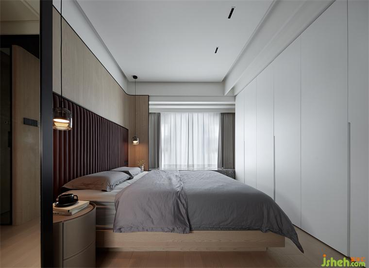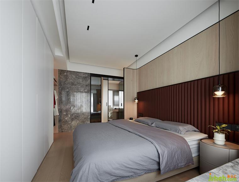 木材质蔓延弧形包裹的床头给卧室的温润与暖意,装修设计搭配暖色软包色调为平静的空间注入居住的温度,松弛,贴己,疗愈,身心皆与空间相融合。晨起迎曙光,临窗沐浴晨曦,以美好的崭新姿态走向更从容的自己。