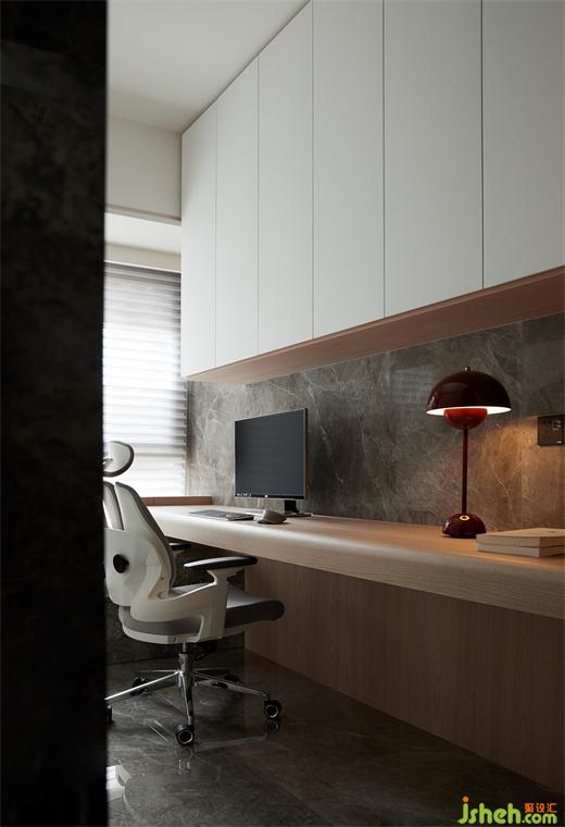 装修设计以睡眠区抬高为界限,延伸出以木质铺装为主的睡眠区和以石材为主的学习生活区,粗中有静、简中含细,浸润出错落有致、和谐融合的空间气质。