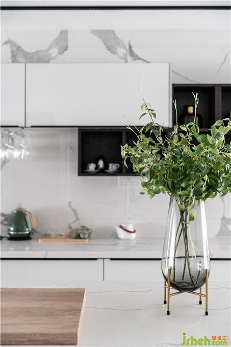 设计师精心营造的“人情味儿”隐藏在这个家随处可见的细节里,一件挂饰、一抹绿色、一盏微光,绿色入眼,木质入心,营造出满满的温暖感觉,一家、二人、三餐、四季,回到家里就是回到最初始的纯净状态,最无暇的本意生活。装修设计