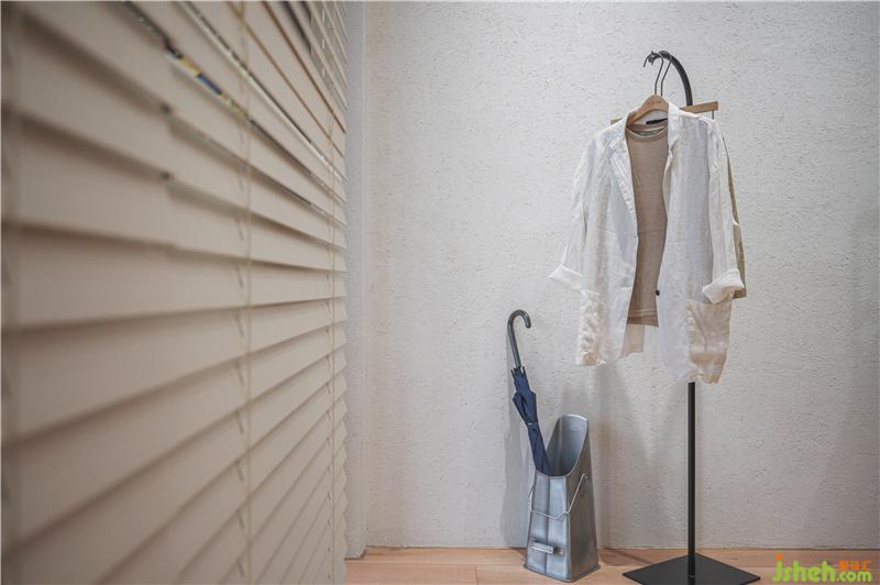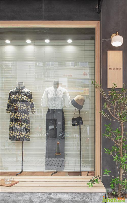 落地橱窗以百叶窗帘为背景,简单干净将橱窗的服装效果展示的淋漓尽致,同时在更换新季服装的时候,收放自如。