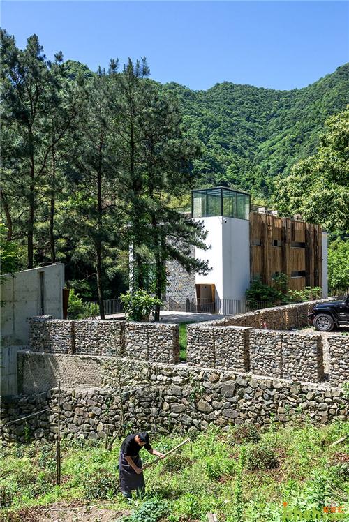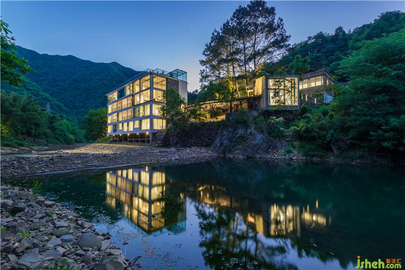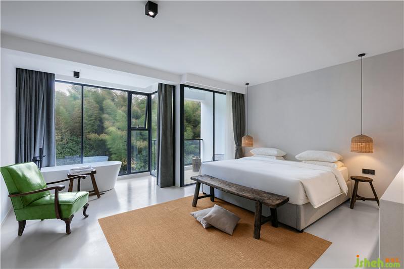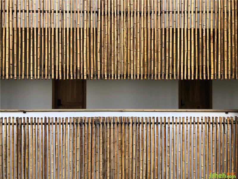 所用材料都取自天然:石砖、木头和竹子。设计着重于当地竹子的运用,将它运用于建筑主立面上海酒店设计,以当代的语汇重新诠释了该地区的传统竹制建筑形式,同时将建筑北立面融合于周围的竹林中。