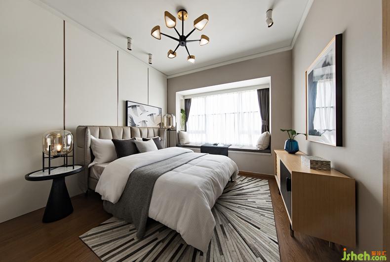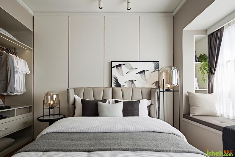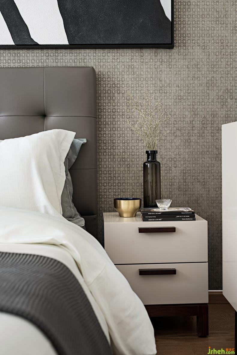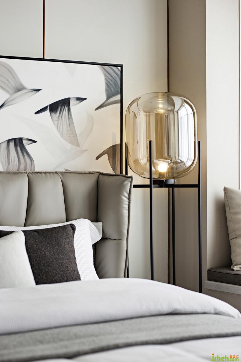 皮质软包床搭配精巧设计的黑檀木床头柜,高挑的落地灯让空间更有层次感,将现代韵律展现得淋漓尽致,深圳设计公司整个空间仿佛一幅精美的空间画次卧灰调背景墙和素净的家具床品,是优雅风情的最好色彩空间在深与浅的碰撞中造就一个诗意的存在。