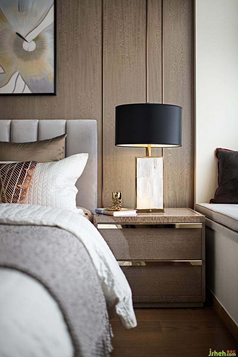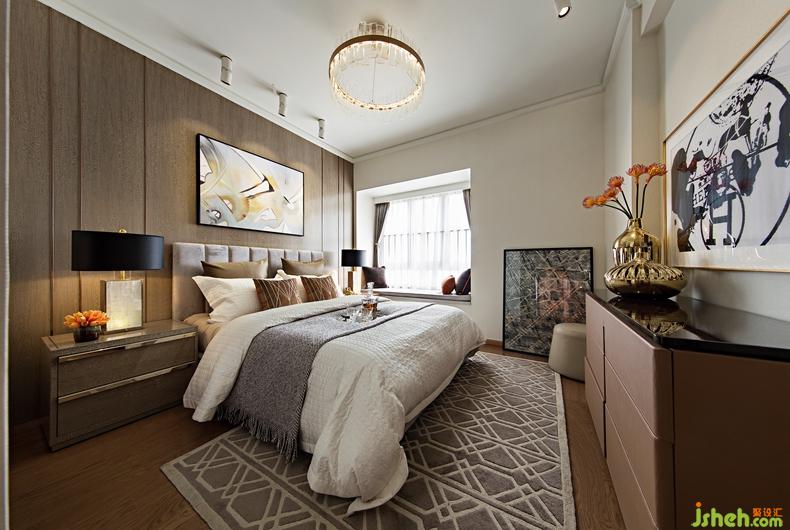 主卧运用简洁的现代手法几何线条家私,深圳设计公司点缀欧式小饰品高品质家居,不张扬不妩媚自然散发的成熟理性韵味提升生活格。