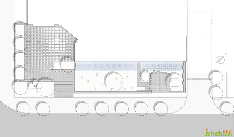 入口广场由礼序前厅和特色广场两个空间构成,后退的景墙设计弱化城市与宗地的界分感,同时空间更显开阔大气而又不至于一览无余,简单中的微妙转折,更新着人们的视觉感受。