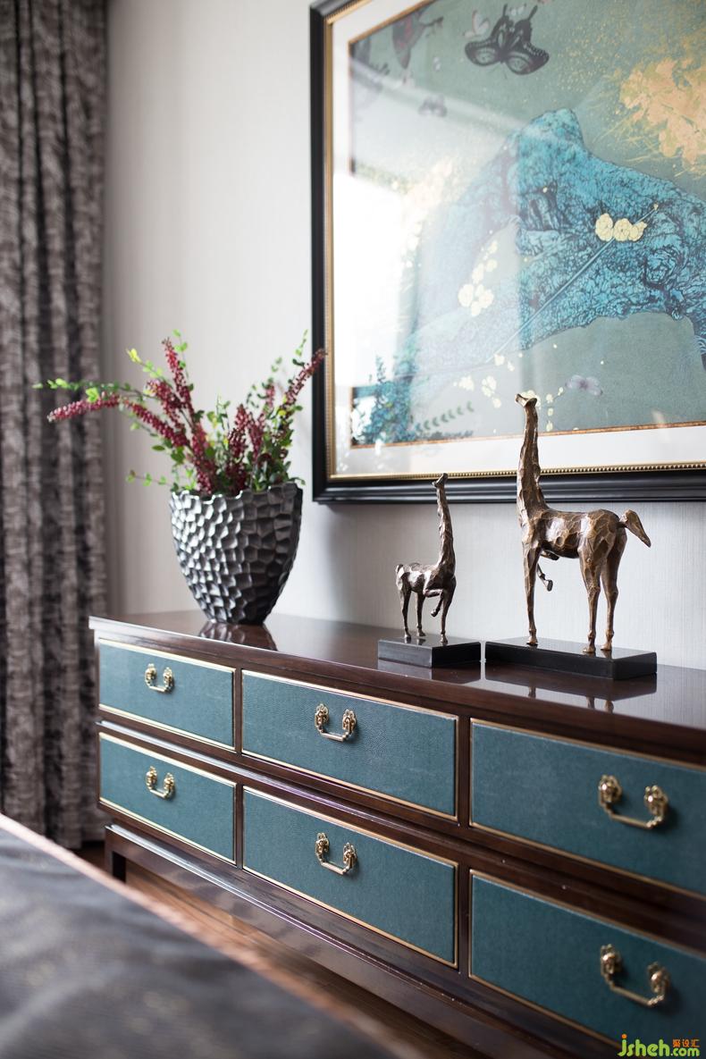 老人房米色调给人一种纯净优雅的感觉,木质家具散发温暖的光泽感,与精美细腻的丝质床品相交辉映,绿植、摆件、雕塑使整个空间多了几分生活意趣,艺术挂画含蓄内敛犹如点睛之笔,充满富有情趣的生活格调。