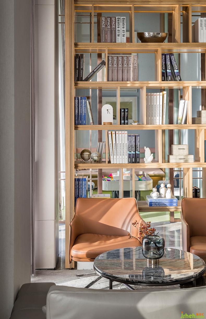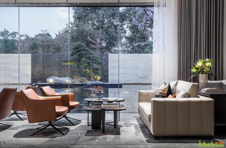 舒适地毯自然地划分出洽谈区,整体开放性的布局,促进多元化的交流与互动,同时落地玻璃向环境借景,呈现出一个融合却又独立的利落空间.