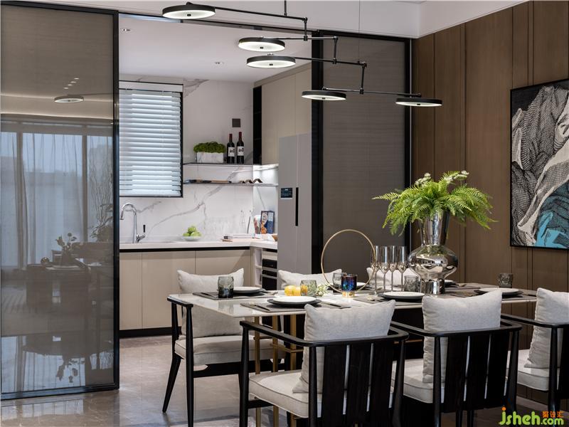 人创造了空间,空间反哺于人,餐厅区通过两扇玻璃门将光线引入室内,同时也将仪式感端上餐桌,营造舒适的用餐气氛,舒畅人的心灵。