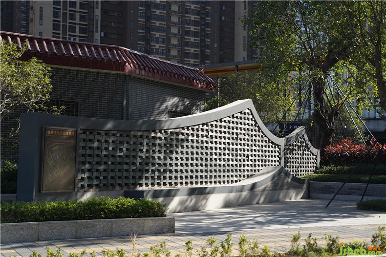 The most beautiful moment comes when the street lights go on at dusk and the entire landscape wall reflects a soft glow where the traditional elements are combined with modern materials. It also surrounds, renders, and overlaps with the soft lights of the surroundings, forming a connection between the past and the future, with a profound artistic conception.