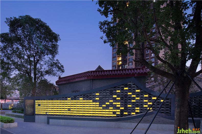 传统元素与现代材料结合,最美的瞬间是夜晚华灯亮起,装修设计整座景墙透着柔光。又与周围星星点点的柔和灯光环绕、渲染、交叠,形成过去与未来的连接,意境深远。