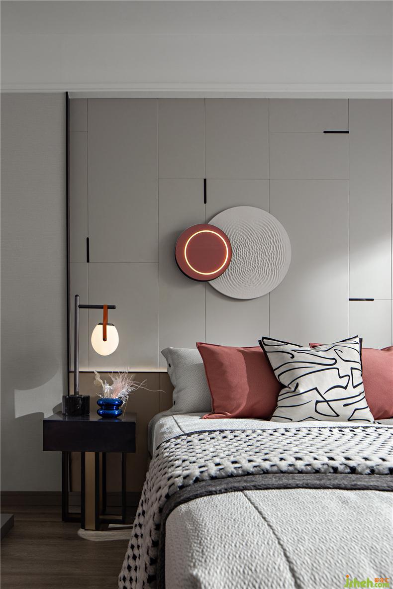 以柔和示人,令低饱和与素色体的交织滋生出空间宁静平和的气质,以古城红挑染空间色彩,与凹凸质感的墙面形成柔与刚的碰撞,飘窗与摆件的融合更让空间的情绪充满活跃。