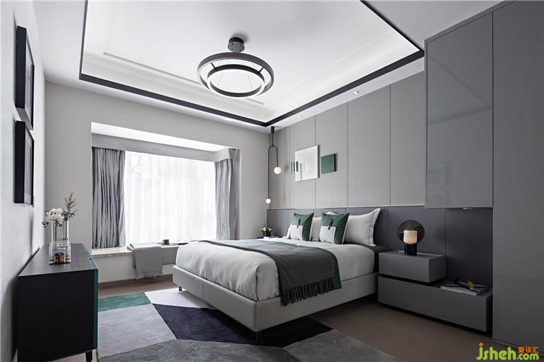 飘窗的视觉和方正的格局,让阳光穿透无阻,空间通透澄明样板房设计