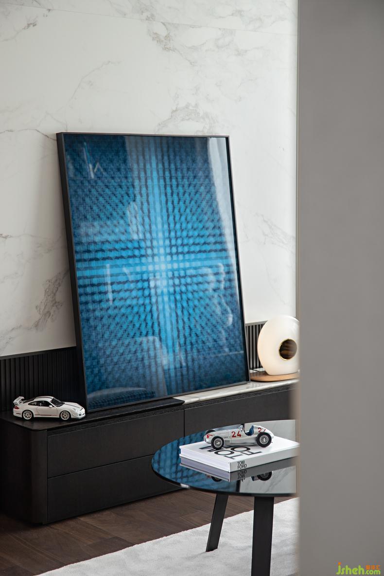 将爱好融入空间的美学趣味中,对手办的青睐与对车模的钟情以科技元素的挂画搭配衬托,样板房设计多元化的收纳布景装下对汽车与科技的好奇,主人对自主空间“大男孩儿式”的表达方式,简单直接并充满着绅士与激情的荷尔蒙,对于自己的生活一丝不苟,对于的自己的个性不假于心,看似是空间的叙事,诚则是热爱的蔓延。