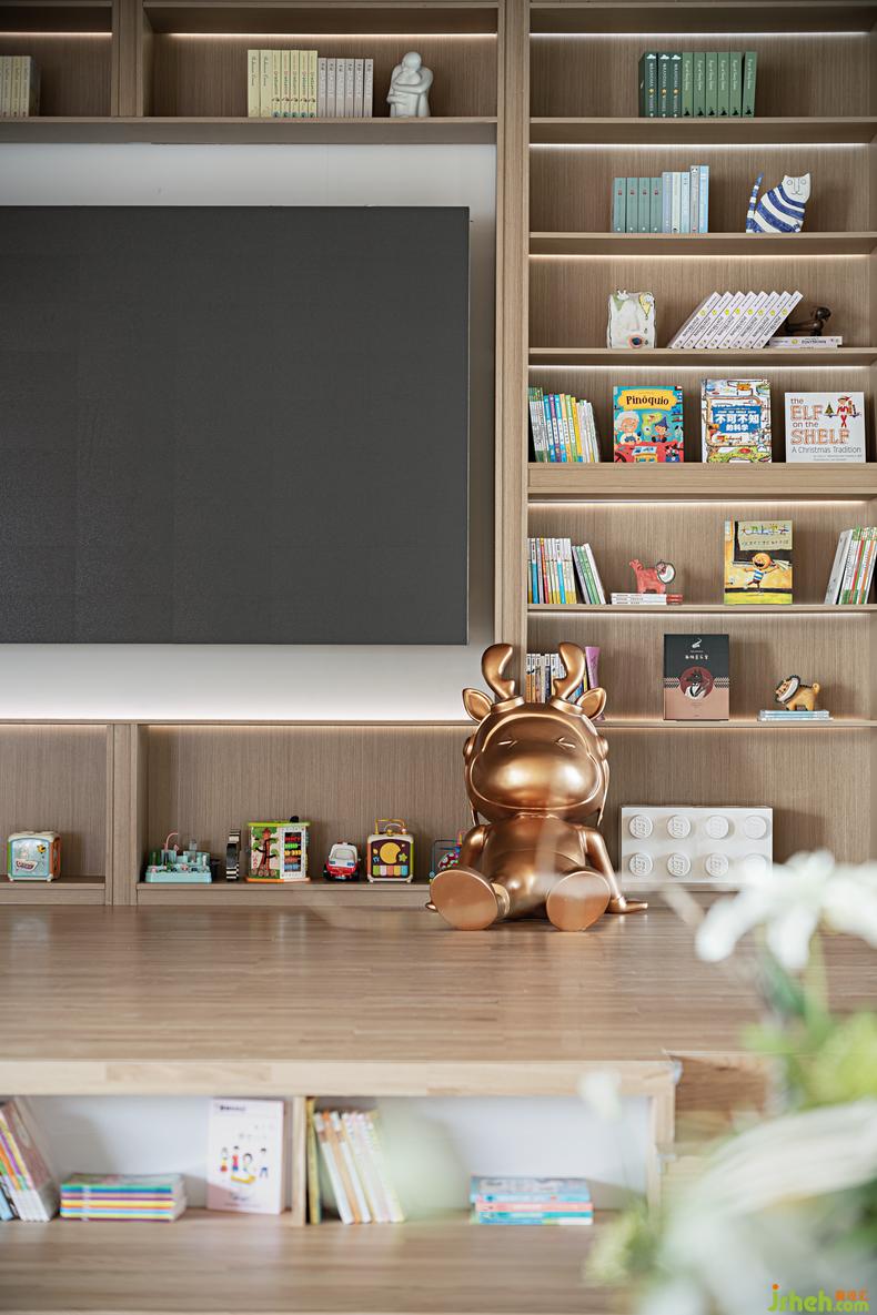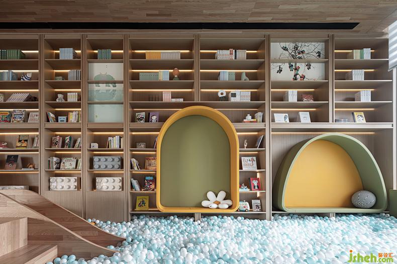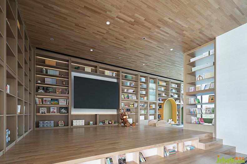 童趣天地丨 大落地的阶梯状布景和整面墙的置储设计,搭配着原木色调的纯粹,样板房设计给这一处属于孩子的世界寄予了无限的生机,书、画、手办足以让童趣无限延展,仿佛一个童真博物馆,让温暖与快乐在这里传递。