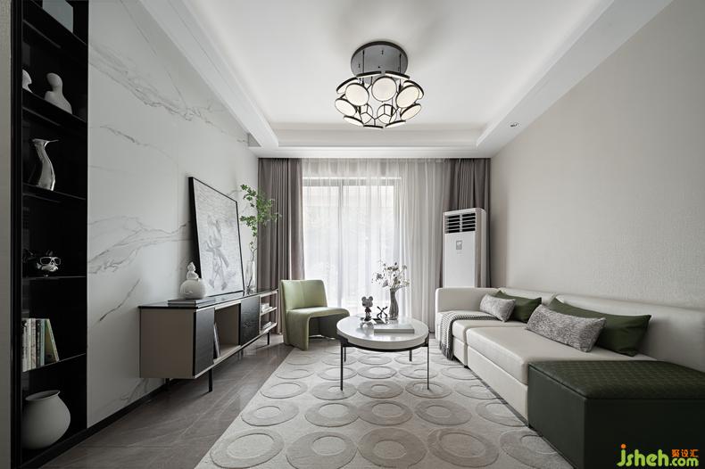 本案简洁干净的线条勾勒整体框架,并以包容度高的白色、浅灰为基底,软装点缀橄榄绿色及少量的红色调,自由沉静的和谐美感。