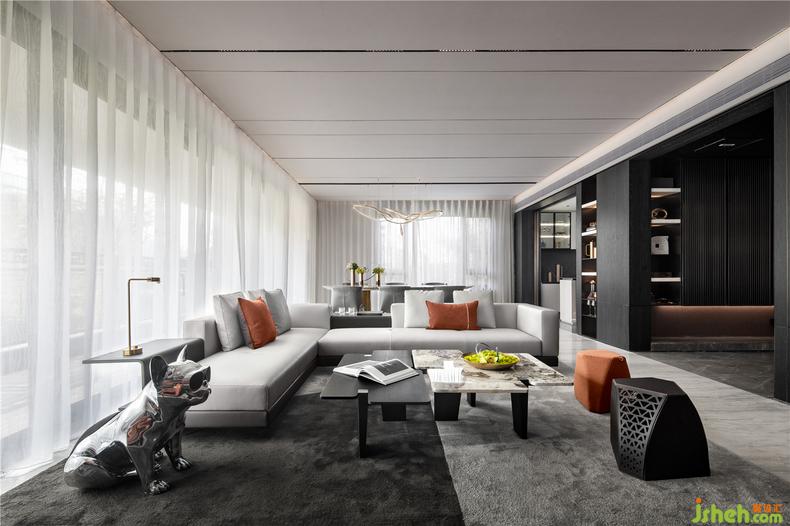 米白色与日光暖暖,极简个性的茶几线条极具现代设计感,艺术配饰在空间中起到调和的作用,室内设计师使整个空间相对柔和,木纹、皮革、水晶的组合让触感在轻盈与厚重间呈现平衡美感。
