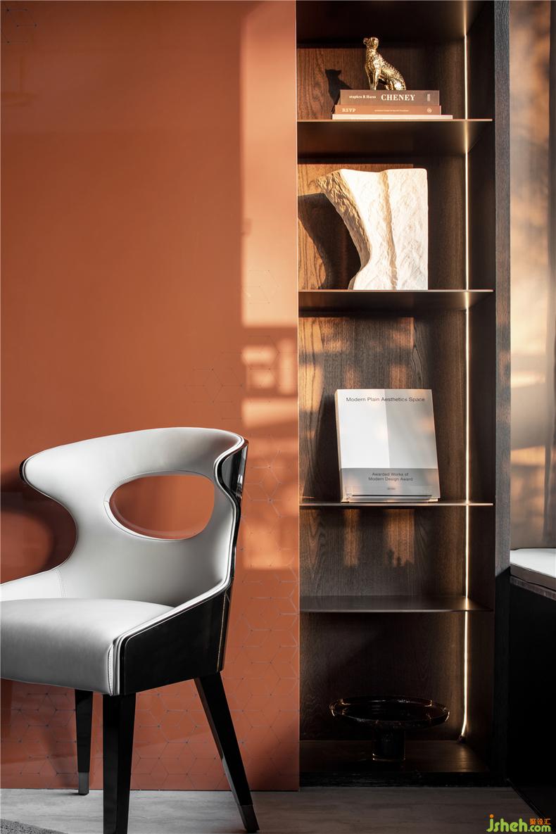 阳光在深泽空间中划出和谐的静谧,爱马仕橙钢琴漆的反光与金属感的点缀像是古典乐一般,室内设计师充满着对岁月哲学,滑动的柜面后面一半惊喜一半神秘,灵感在这里或者在那里。