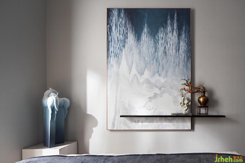 客卧丨中式意蕴与西方油画手法结合去创作艺术挂画,富有禅意的插花与雕塑精致宁和,设计师用更圆融的手法演绎着端庄的东方式内敛,营造浪漫又不失贵雅的氛围。