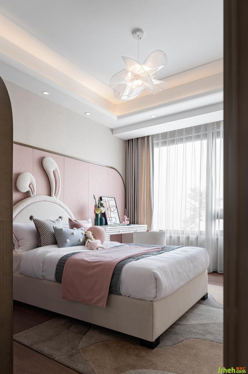 儿童房丨嫩粉代表着柔软的热情,兔耳朵造型的床头搭配可爱的玩偶,蔓延着全家人对小孩子特殊的疼爱,与温润宜人的日光共同谱写成长的序曲。