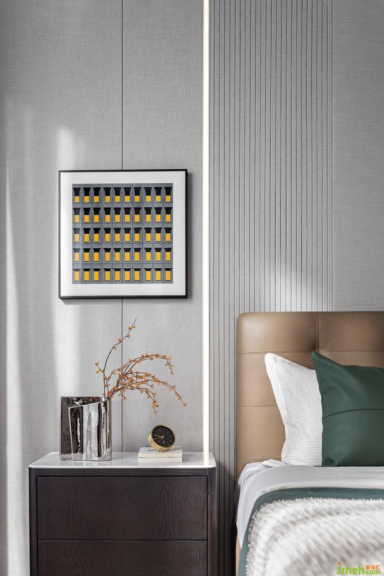 主卧丨框架之外、格调之内,含蓄的色调与氛围,温馨自处,室内设计师艺术挂画与插花呼应,不着痕迹地将生活状态与精神气韵衔接融合,其他的留给阳光和时间赋予空间生命力。