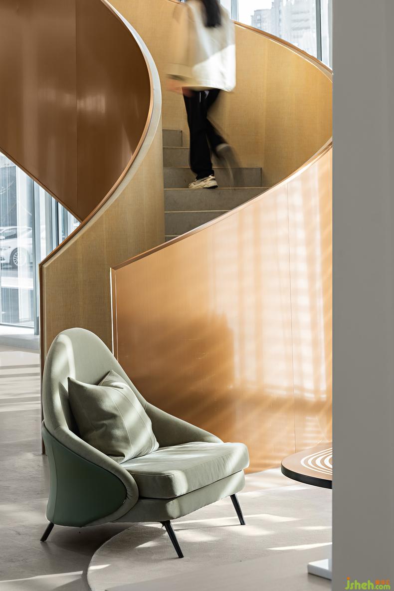 旋转 丨结构与视角构成“各种各样的空间”,光影经由玻璃投下自由的舞蹈,装修设计洒在金色的楼壁上,不可名状、不予置评,如此甚好。