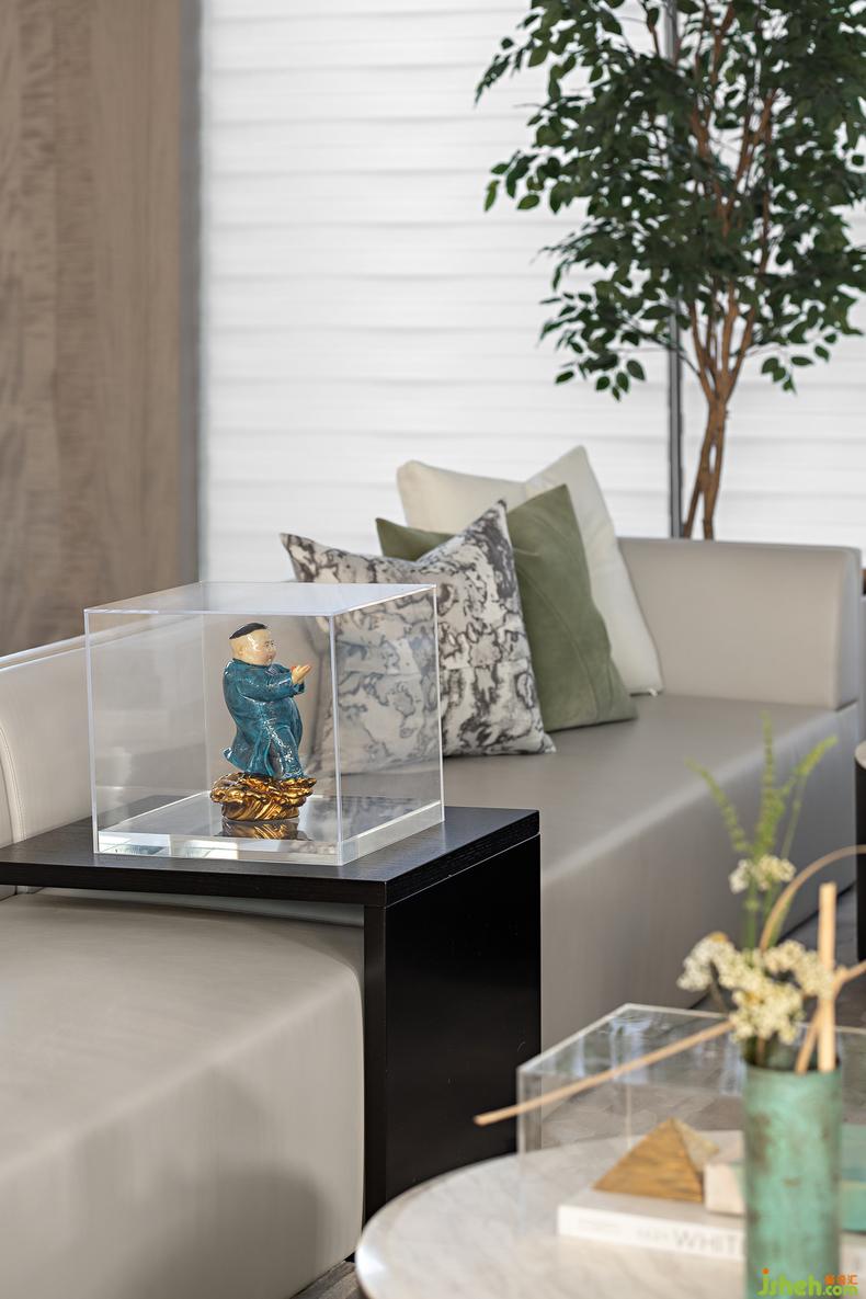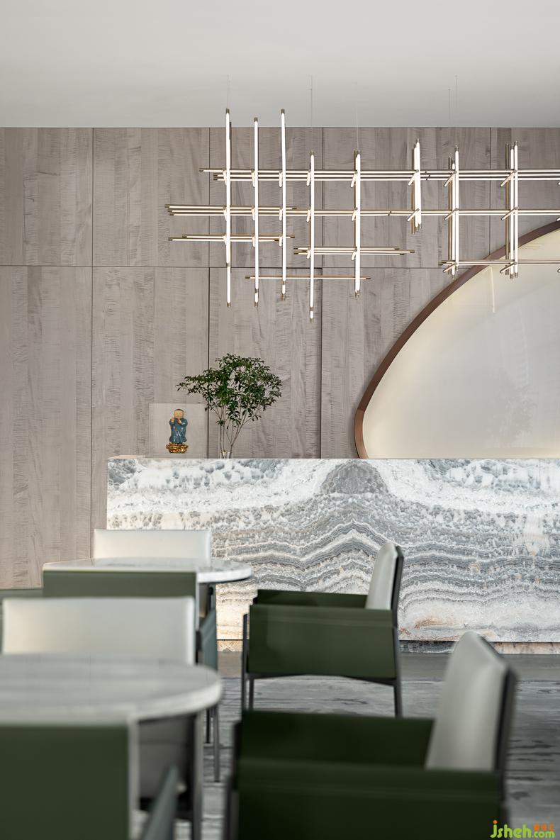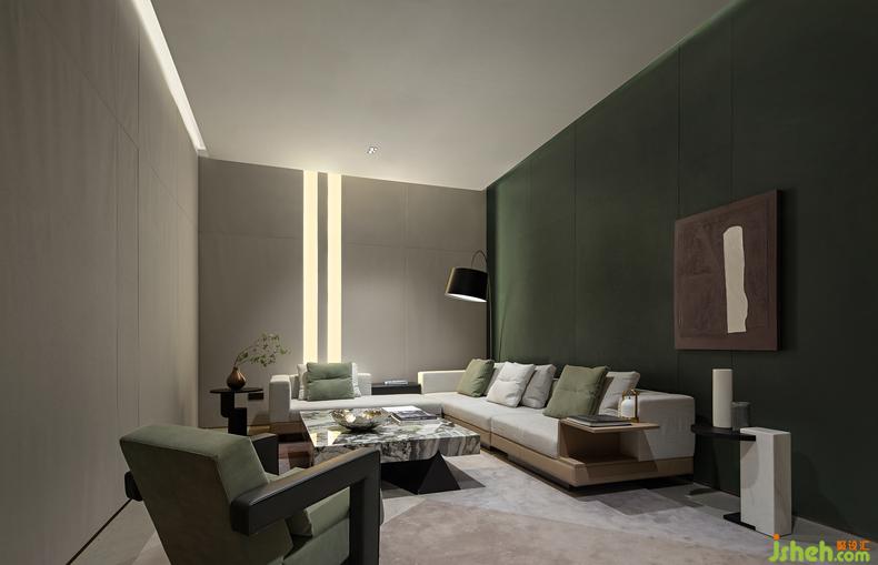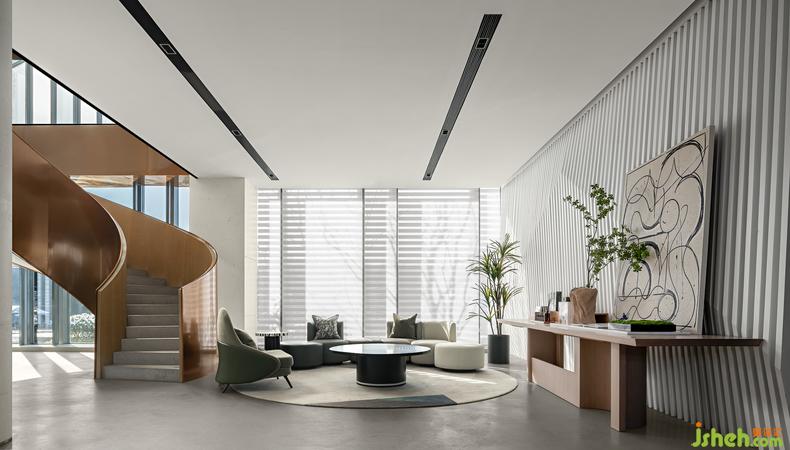 创作暖场区 丨流浪的线条在此找到归宿,大面积的灰色与清新温柔的绿调在空间内游弋,装修设计百叶窗环绕玻璃立面,阳光见缝插针的撒进来,一旁的长桌上摆放的香薰器物,此刻的你,可以窝在沙发里享受闲暇,也可以摆弄时光。