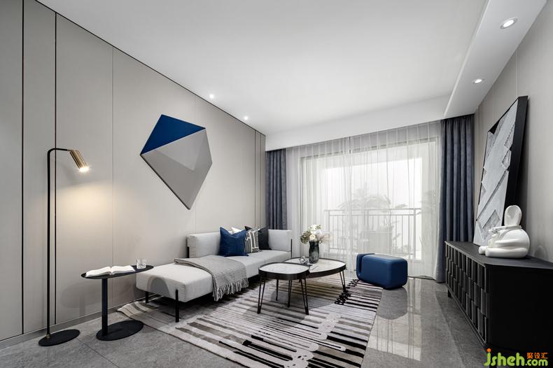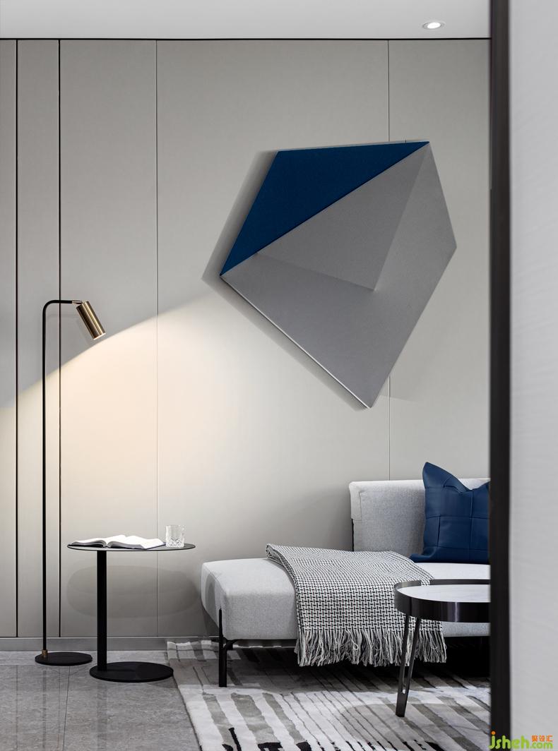 丰盈的蓝色调点缀和墙体艺术作品的展呈