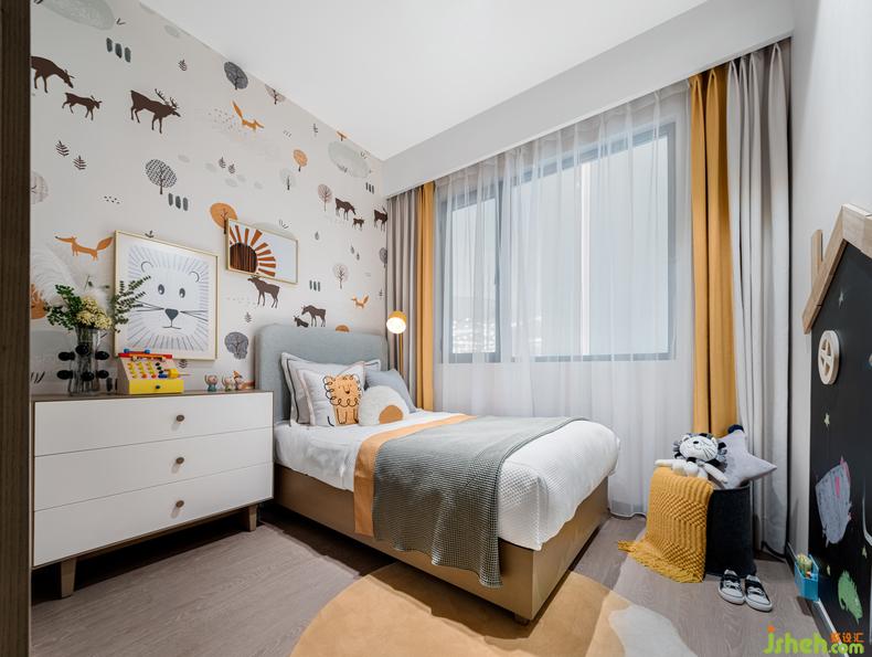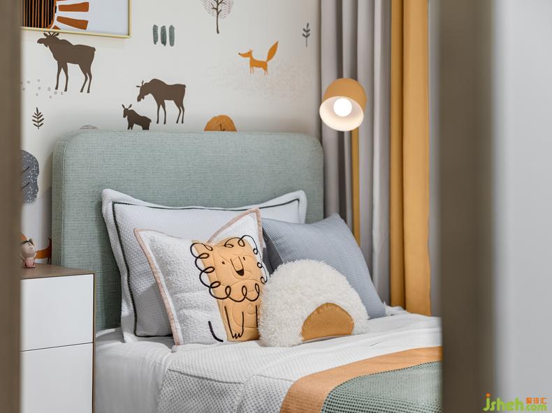 采用大面积动物形象铺陈儿童房的漫画色彩