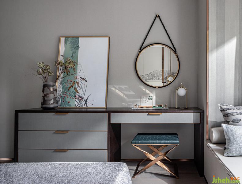 节奏和韵律都可以激发人们对美的联想,梳妆区域的表现一定是柔和的、朦胧的,创意的圆镜,创意的摆件,鎏金色彩的使用让空间多了感性的情愫,给美多一种色调,让生活多一些优雅。