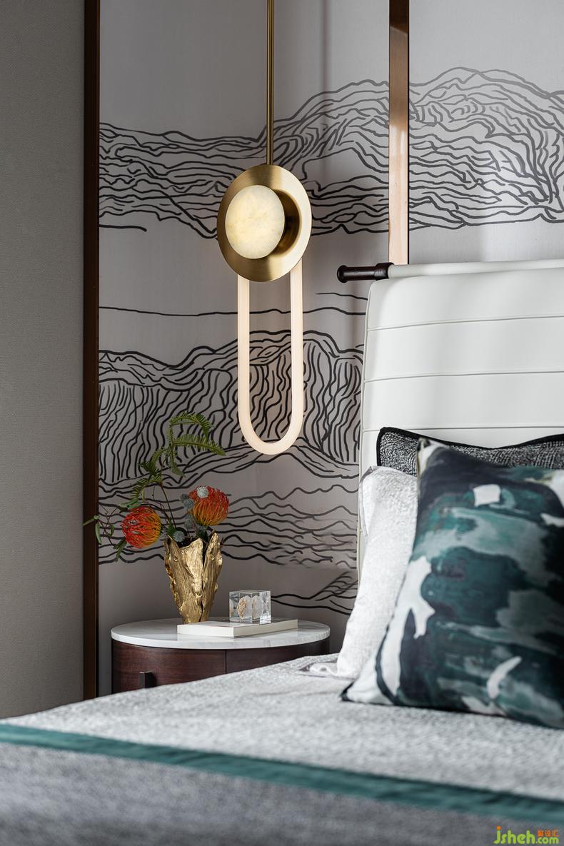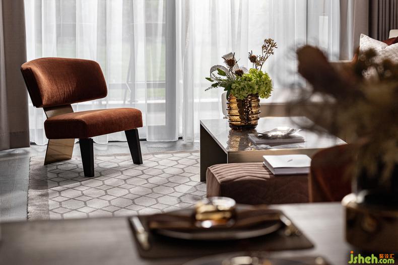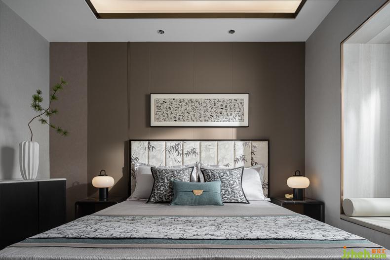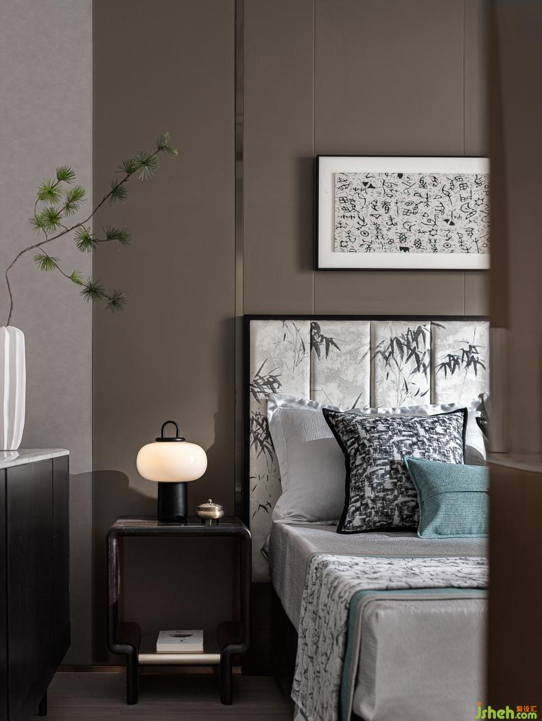 客卧选择赭色作为一种叙事语言,让整体视觉更加精致活泼,而松竹在静物中的应用,则让这份活泼又多了些轻盈与淡雅,置身其中,恍若梦与诗意的具象。室内设计师