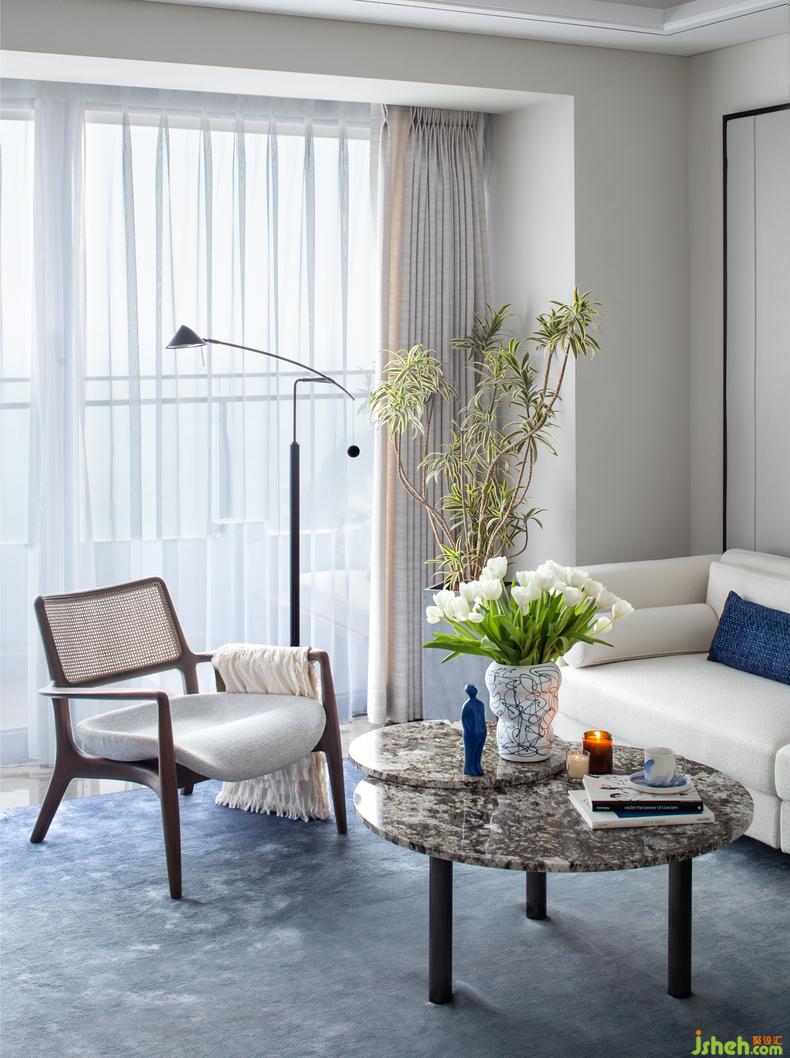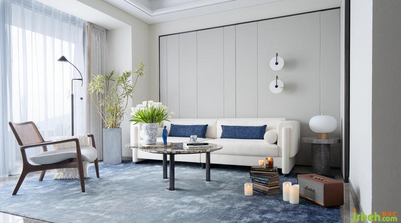 客厅丨空间是自由的,而在自由之上需要色彩与配饰的组合,大范围的留白色调,室内设计师让鲸蓝和植绿显得更为亮眼,随心而置的Marshall音响和Yankee香薰,为美的传达增添了一种律动,不用过多笔触,就是一场属于假期的必备仪式。