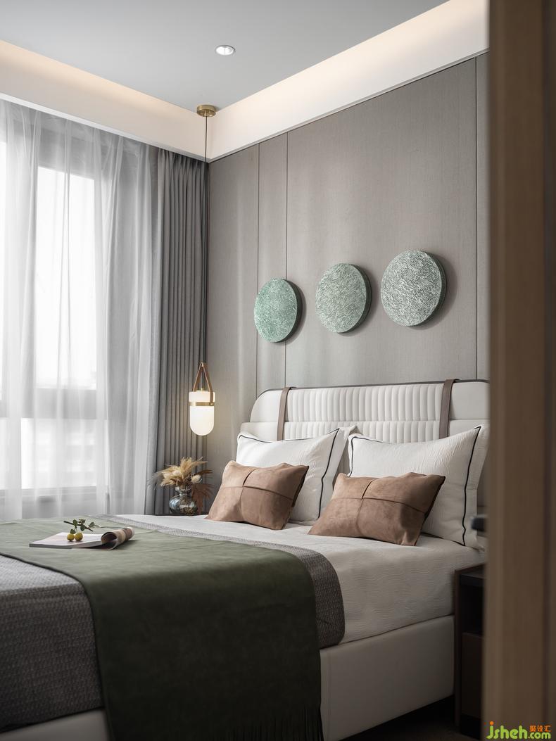 主卧丨纵深的视角赋予着空间对于节奏的感知,长镜头的感知让视野得以拥有最大限度的舒展,功能性的区格让起居被赋予了多元化的包容力,也让木质的素雅和石材的气韵,在这个空间里挥洒的淋漓尽致。