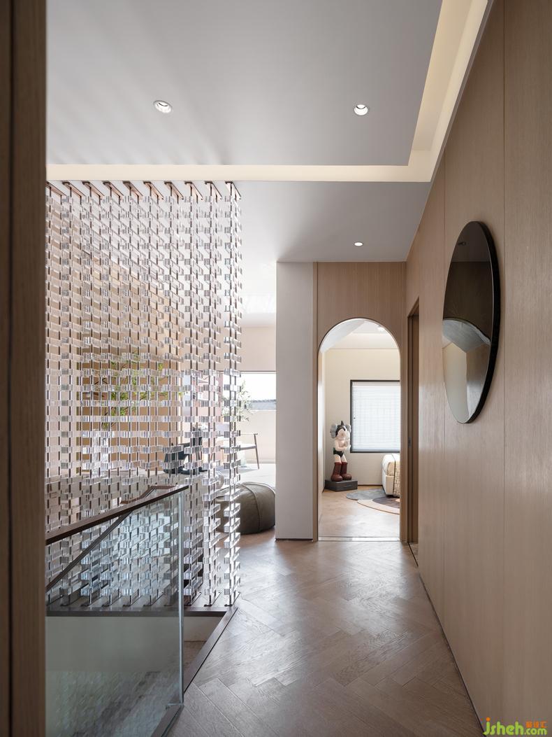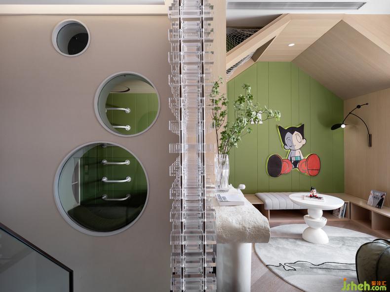 空间转换至儿童房丨廊道的空间转换在拱门的优雅弧度之下,样板房设计呼应着和谐的韵律更不乏了几分俏皮,当视角延伸至尽头的一隅,阿童木的模型印入眼帘,让人们对空间充满童趣的遐想和探索的动力。