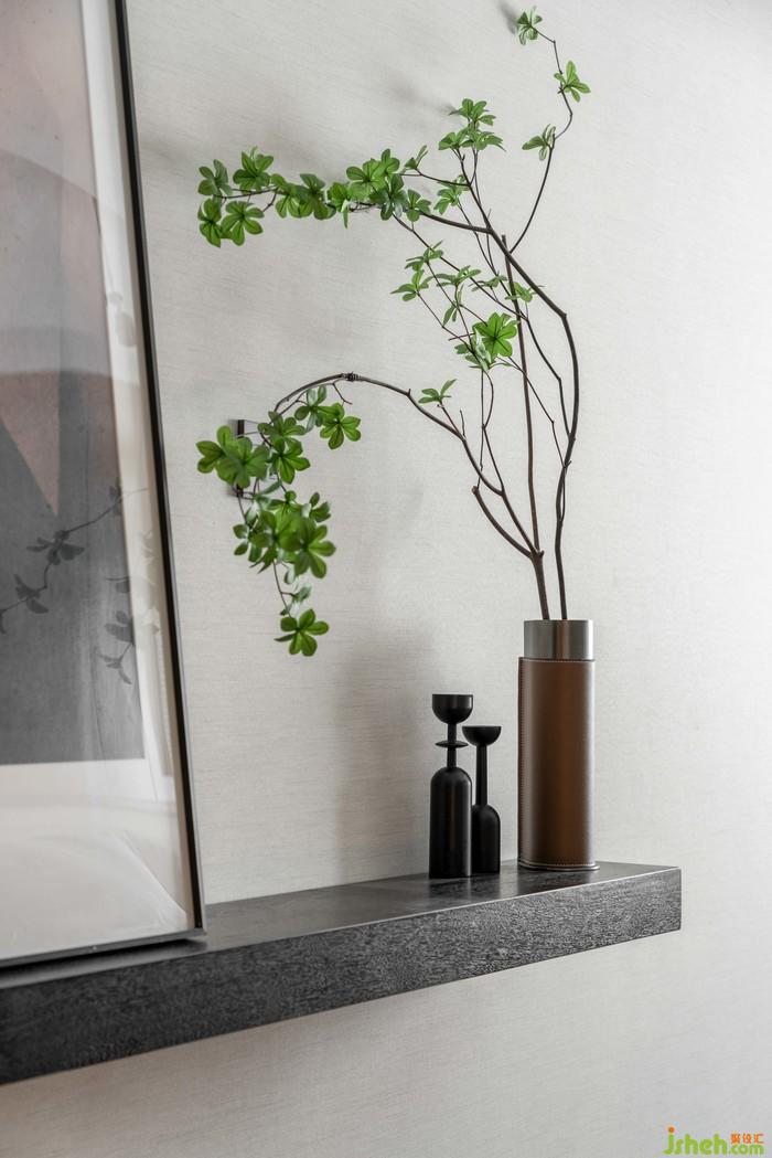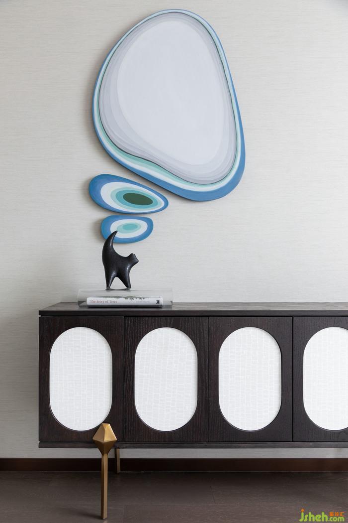 客厅细节丨在客厅的空间里,细枝末节都是对舒适一次具象感官的演绎,方正的空间在暖调的光影包裹下,泛着柔和的气泡,写意的壁画,创意的陈设,打破了空间的界限,在不同形态的几何体块的铺陈下,促进了边界空间内的现象学叙事