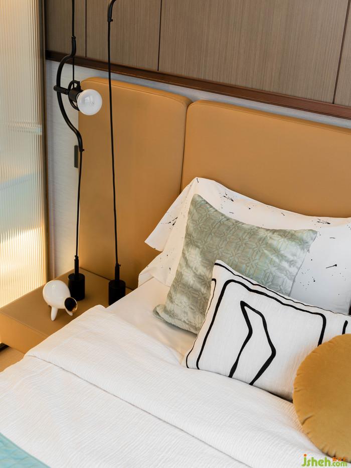 客卧丨在木质的装饰之下,延续整体温暖时尚的调性,通过光影的点缀和色彩的提升,给家的空间在美学之上,增添了更多的安宁和美好,以可触摸可感知,与居者建立心理上的连结,让放松舒适的氛围贯穿生活。
