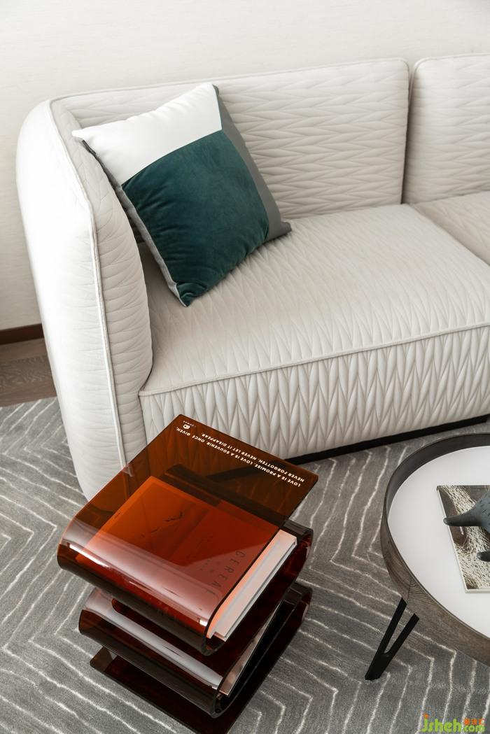 客厅丨嵌入式磁吸轨道灯,保持天花板的简洁素净,在落地光影的配合下,让日间和晚间的呈现模式在视野维度上,有着清晰而动感的切换,前后通透的户型结构,更让起居延续着客厅空间的知性气息,让休闲与休憩可以随心转换
